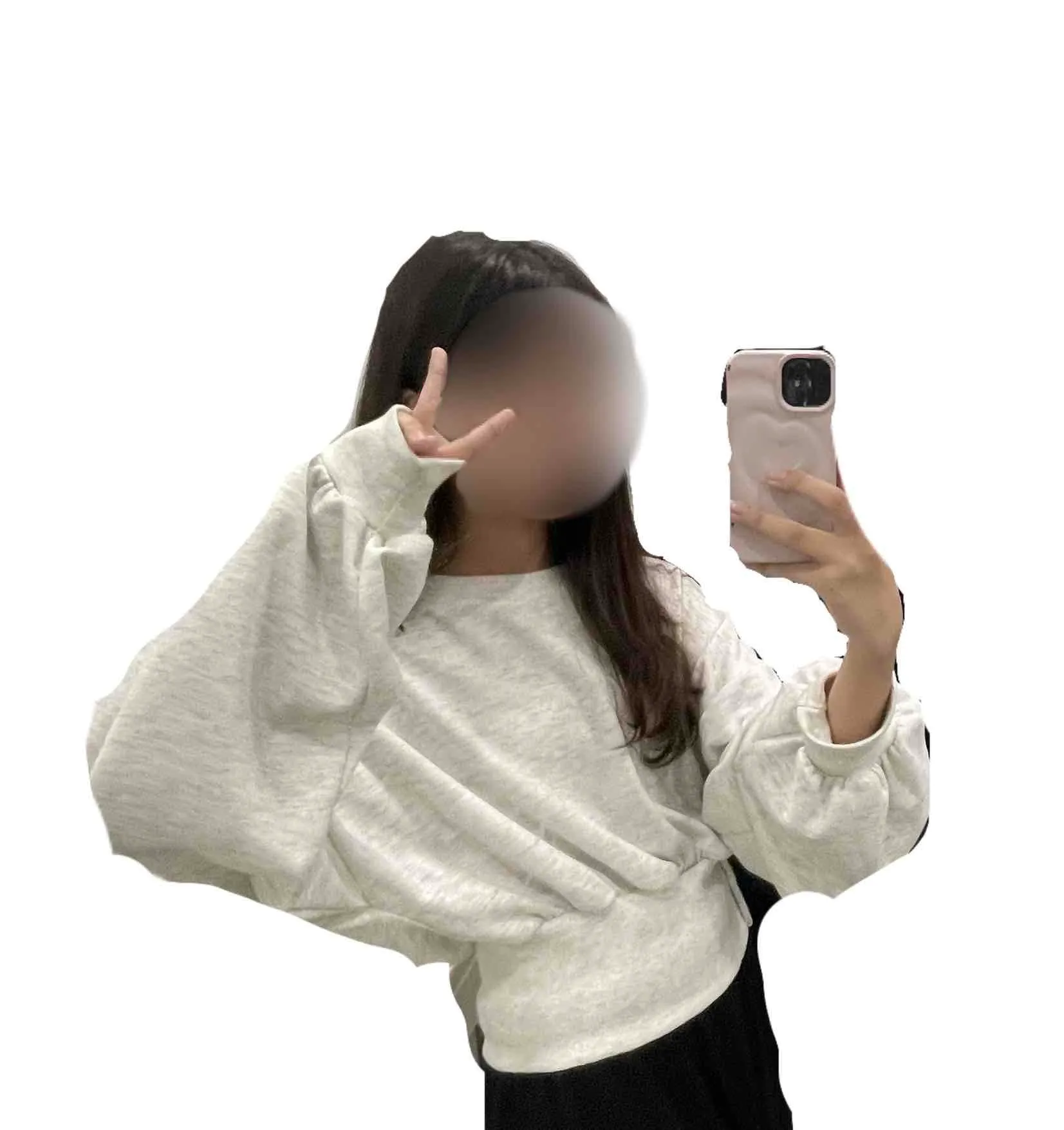 STS28238 ユニークボタンラウンドクロップ長袖Tシャツ