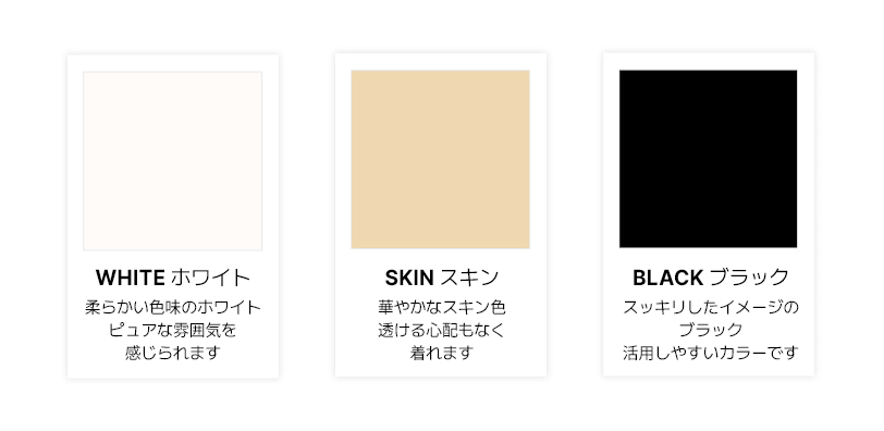 | 透け感 | なし | 普通 | 明るい色のみ | あり |