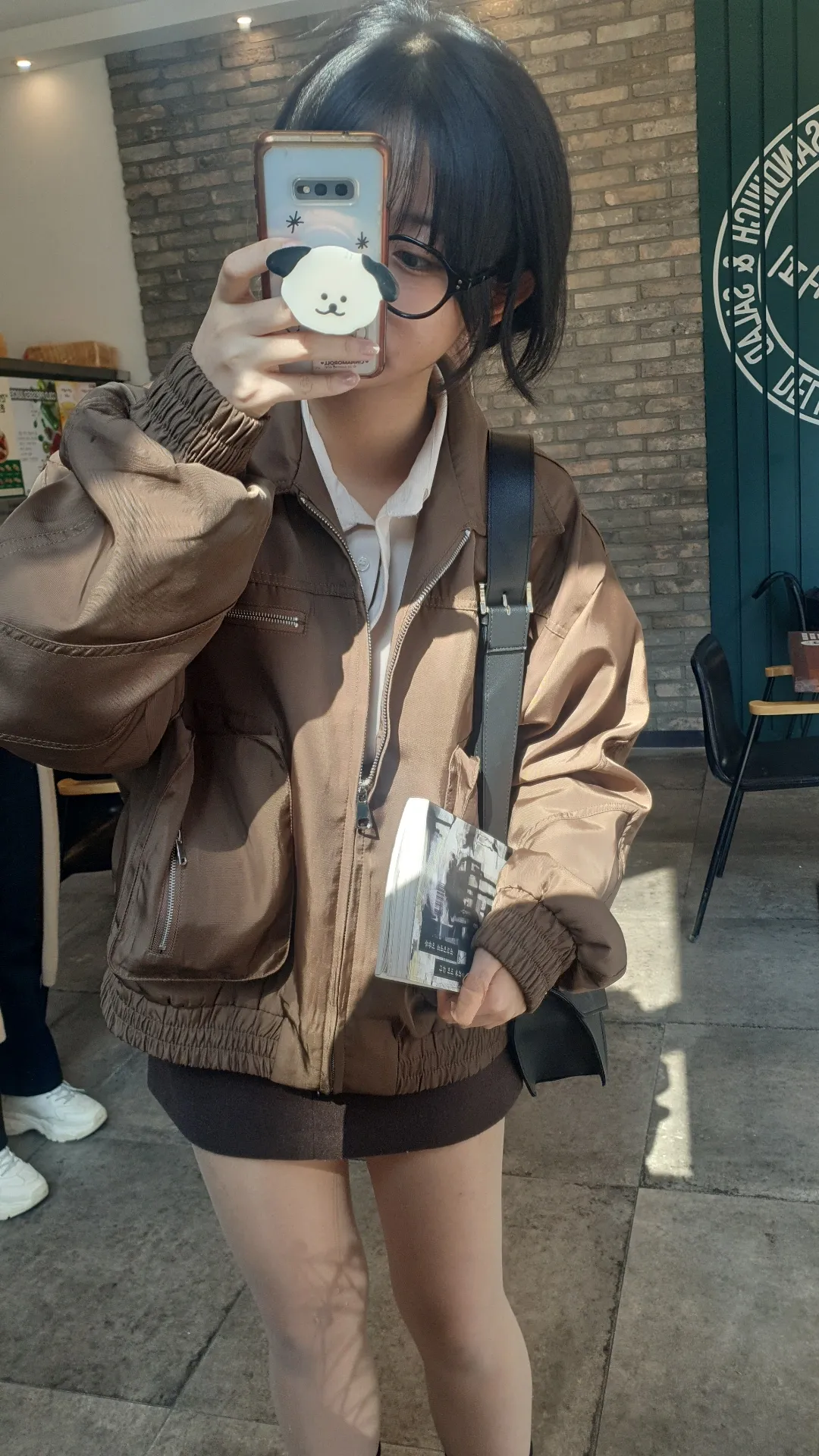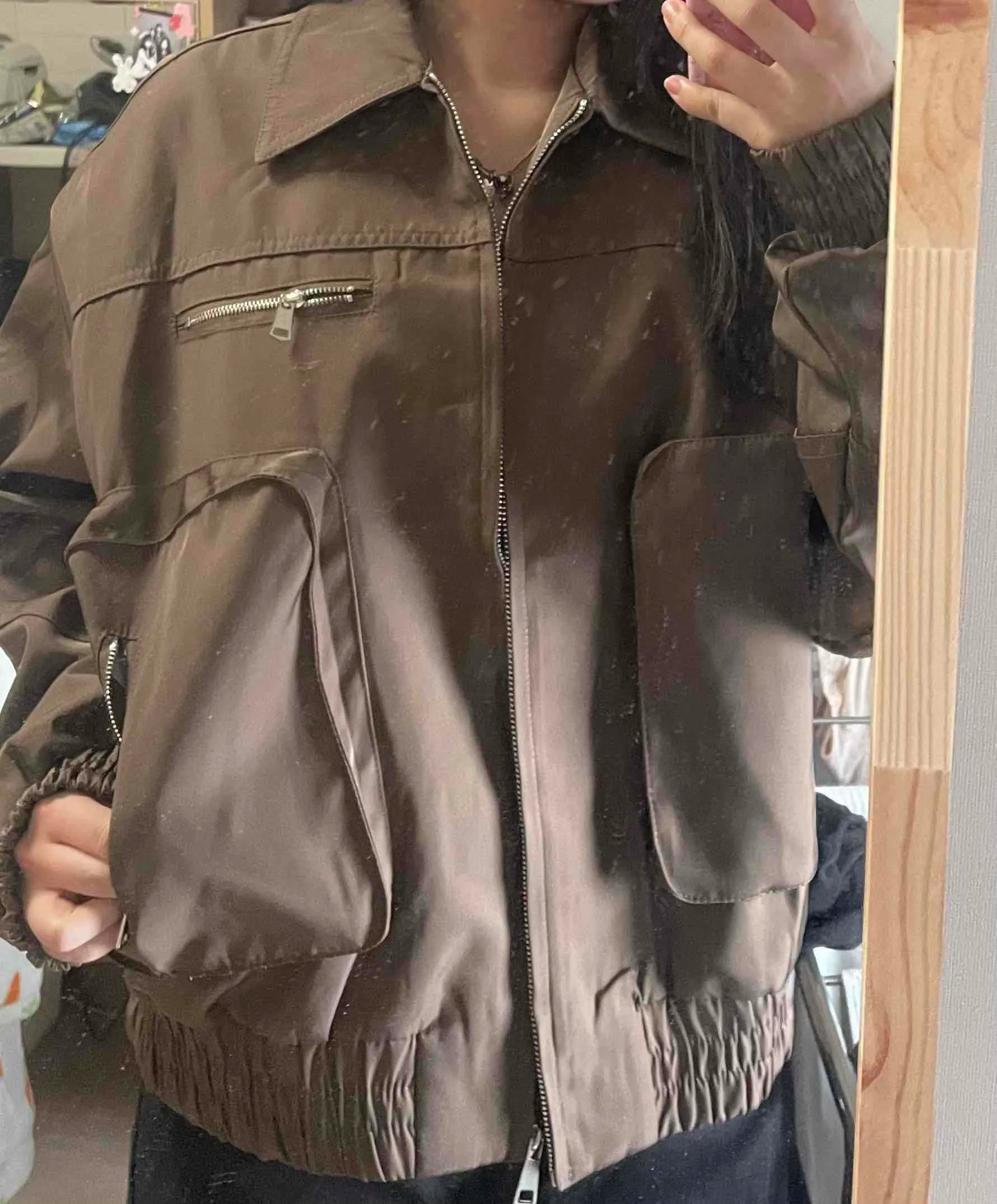 SJK10159 ブラウンオーバーフィットボンバージャケット