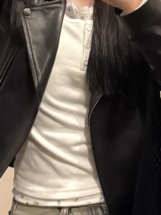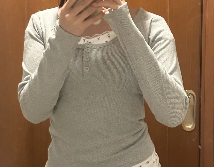 STS48132 レースボタンレイヤード長袖Tシャツ