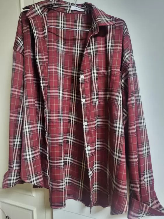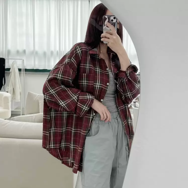 SBS23213 バーガンディーチェックシャツオーバーフィットシャツ