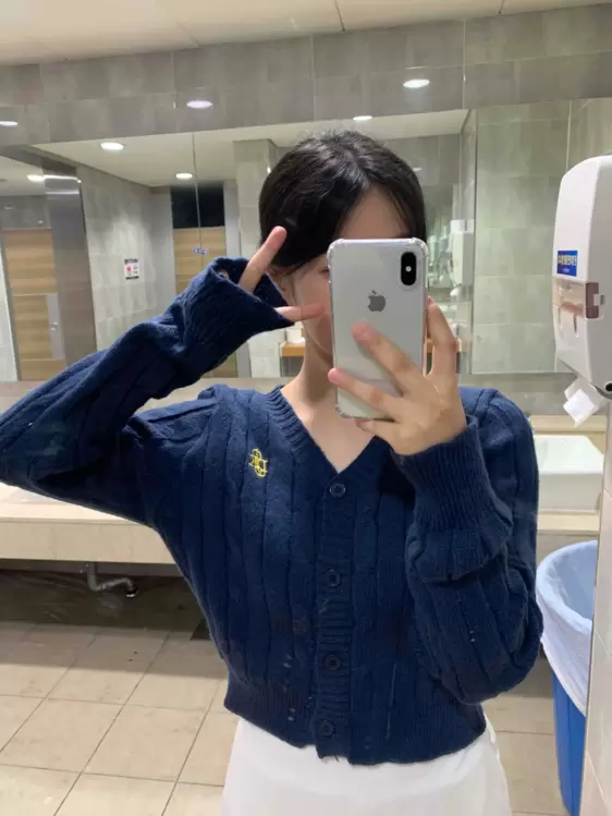 SGD23058 ケーブルクロップVネックニットカーディガン