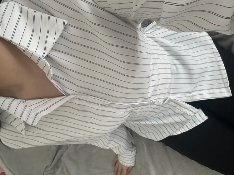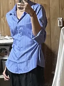 SBS23409 ストライプウエストボタン長袖シャツ