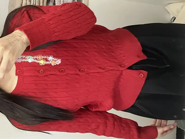 SGD23579 ケーブルラウンドセミクロップ長袖カーディガン(5color)