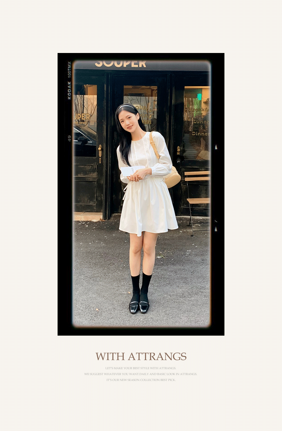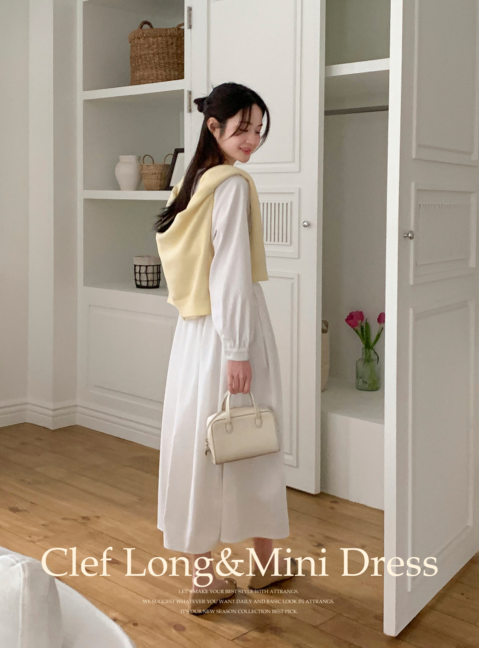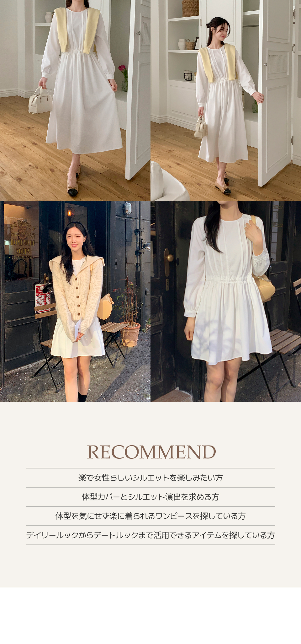 SOP27350 (ウエスト調節/華奢見え) クレフピンタックストリング長袖ミニワンピース
