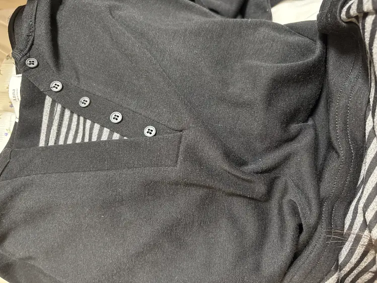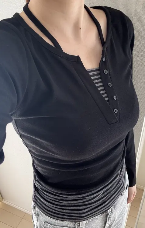STS62724 ストライプバイカラーホルターレイヤード長袖Tシャツ