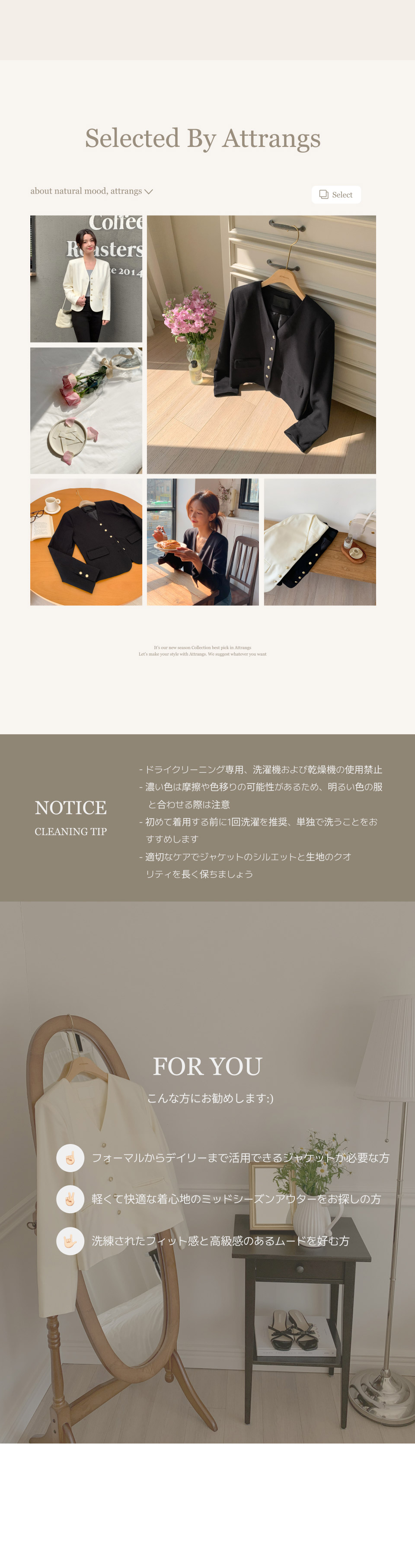SJK13945 (MADE/ハレの日コーデおすすめ/クラシックフィット) グロウゴールドボタンノーカラーブイネックジャケット