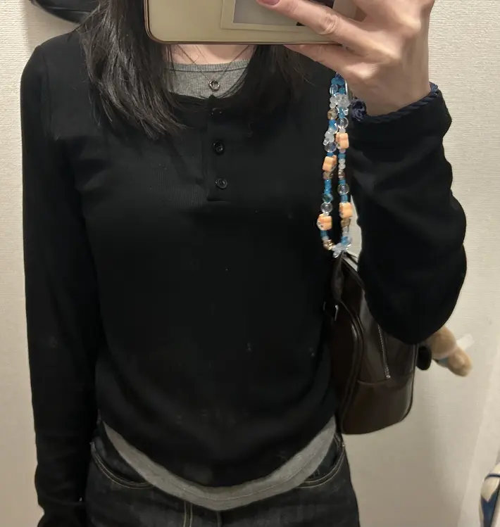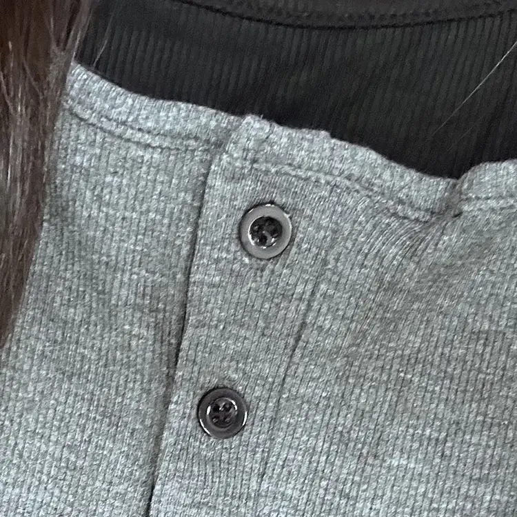 STS64822 ボタンバイカラーレイヤード長袖Tシャツ