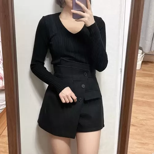 STS3093 VネックリブニットTシャツ 6colors