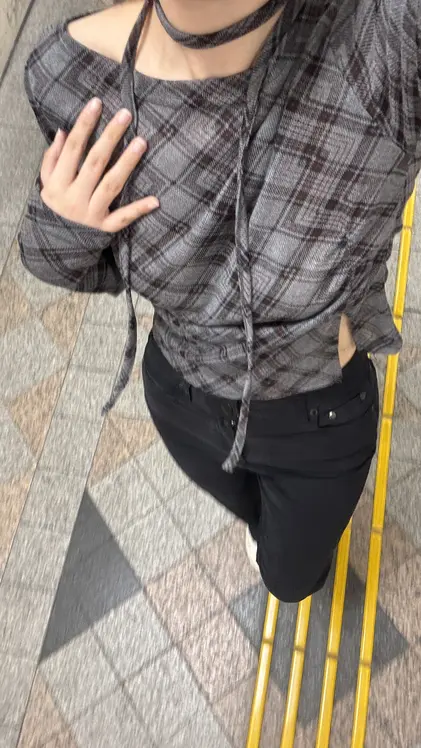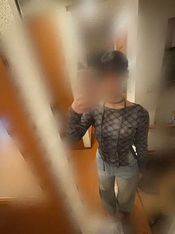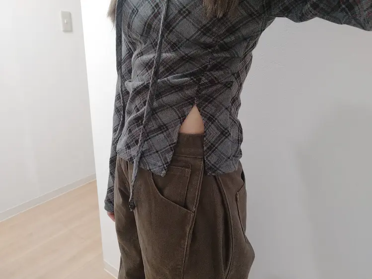 STS70122 【タイ】シャーリングチェック長袖Tシャツ