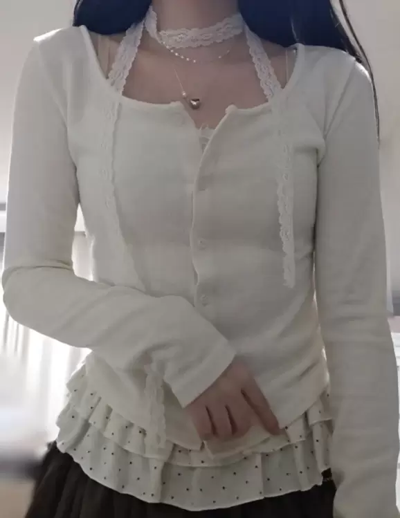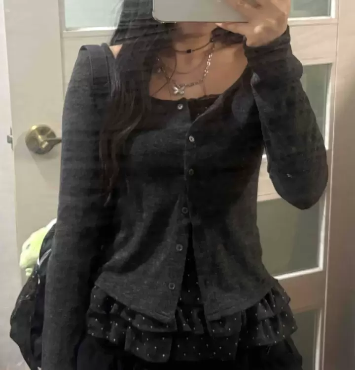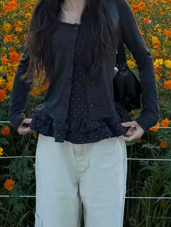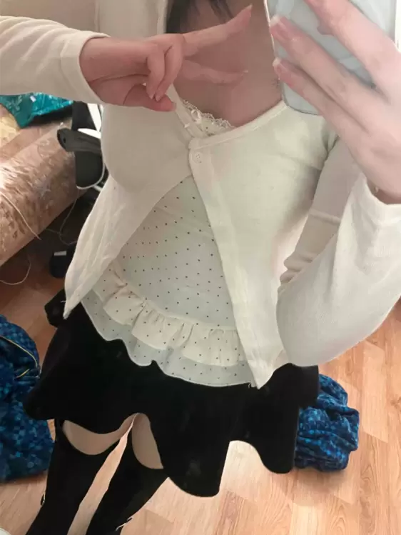 SGD29034 【SET】フリルカーディガン+ドットキャミ+マフラー