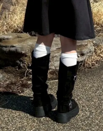 SSH2066 厚底スエードバックルロングブーツ
