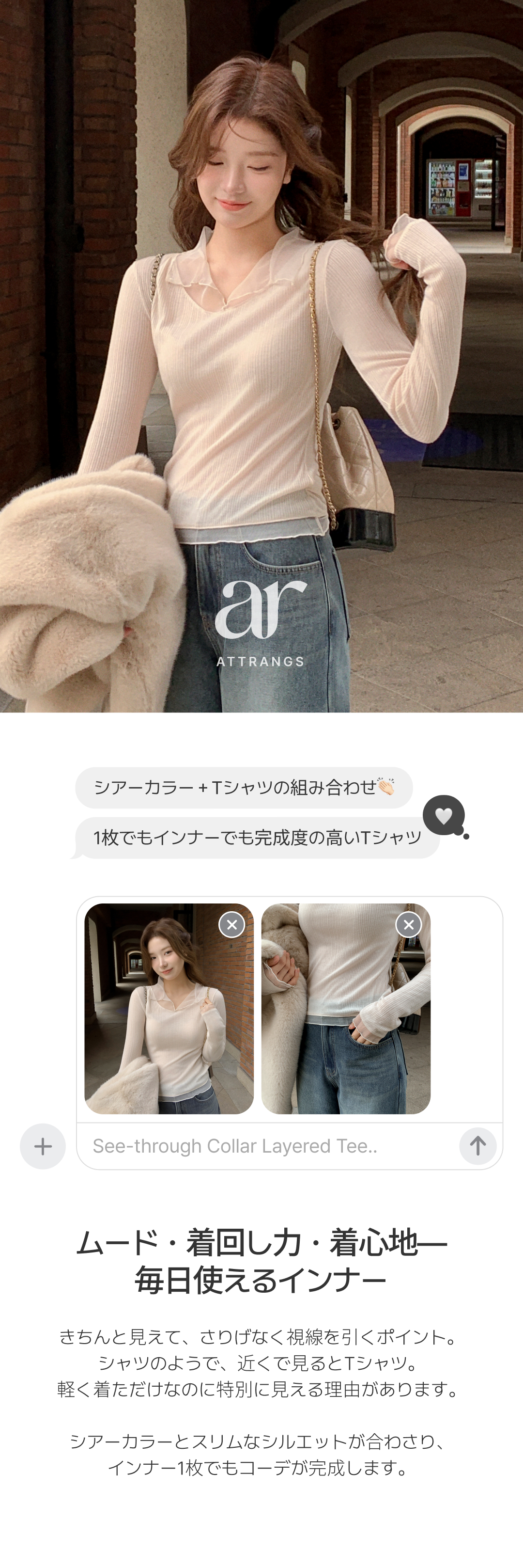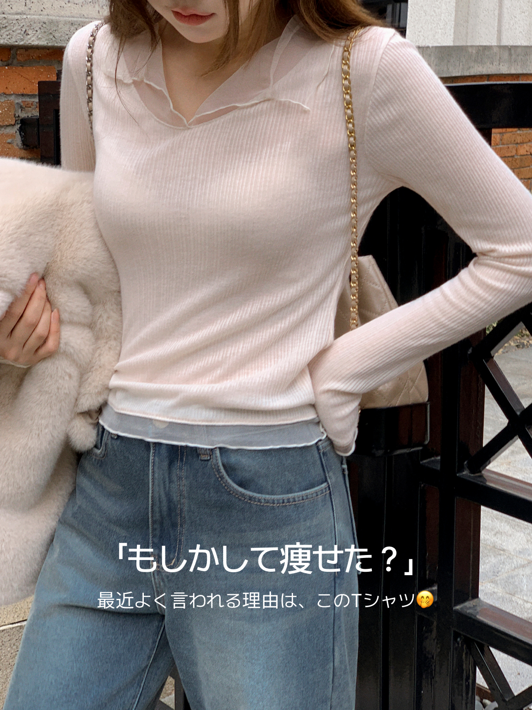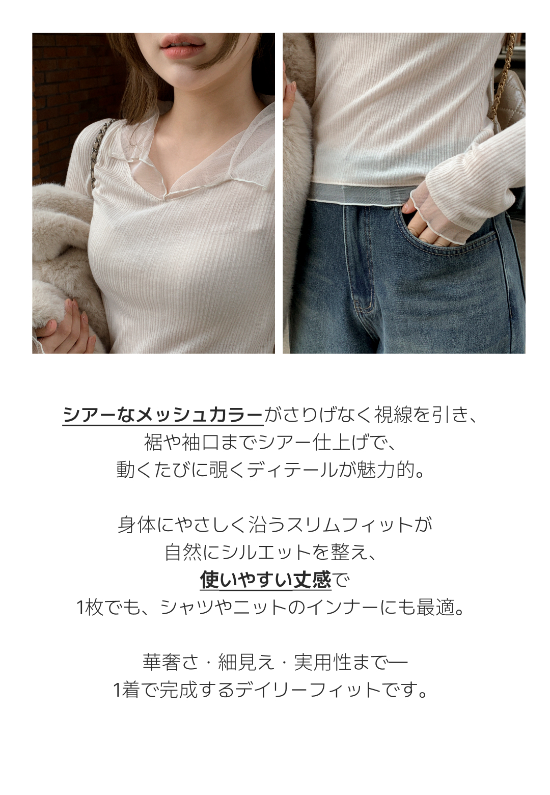 SNT33569 (華奢見えシルエット/伸縮性あり)ヘイラ メッシュカラーロングTシャツ