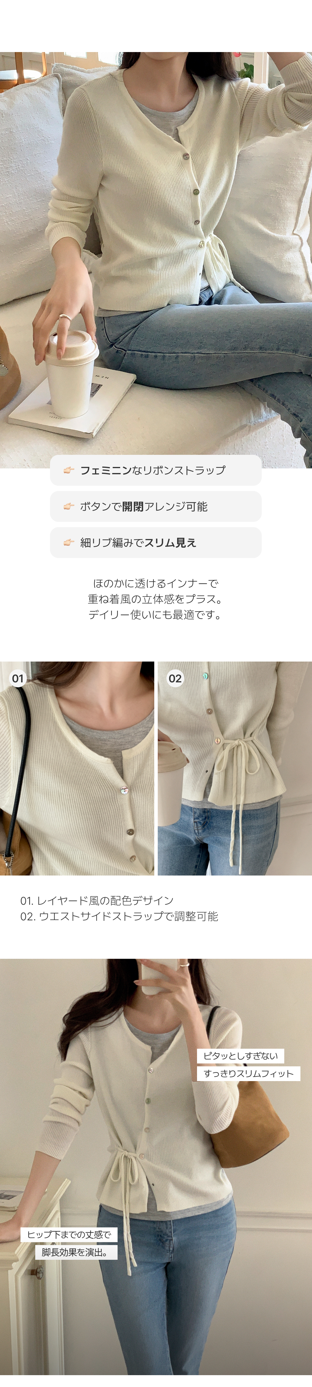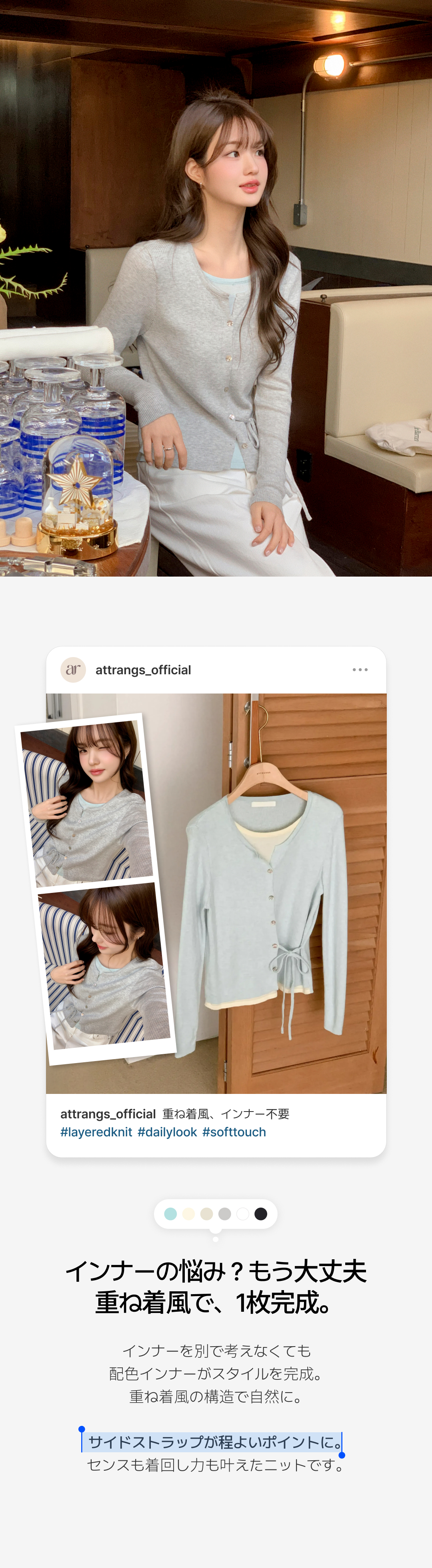 SGD30852 サイドストラップ配色レイヤード風カーディガン