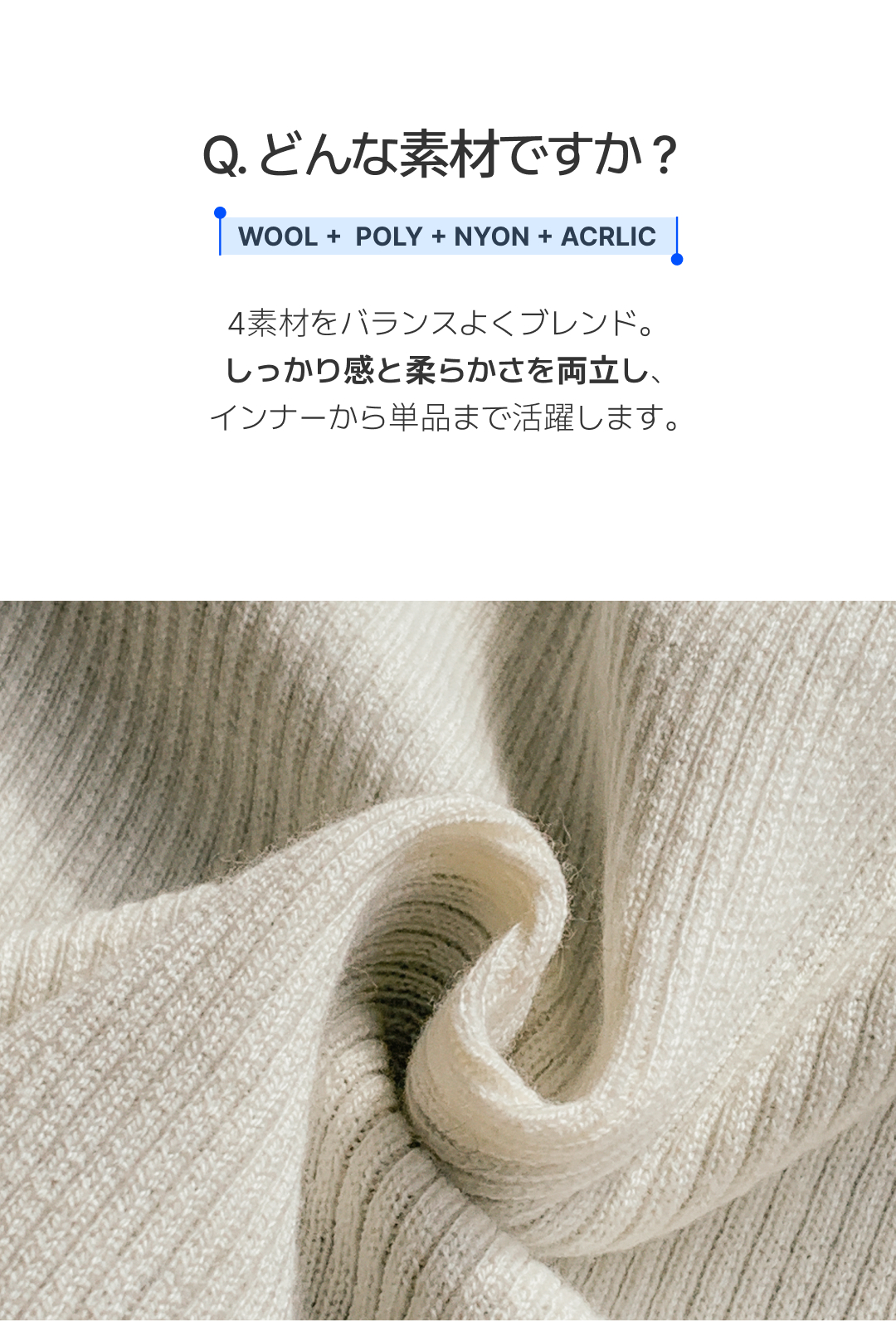 | 素材 | POLYESTER(42.7%), ACRYLIC(33.4%), NYLON(19.2%), WOOL(4.7%) |