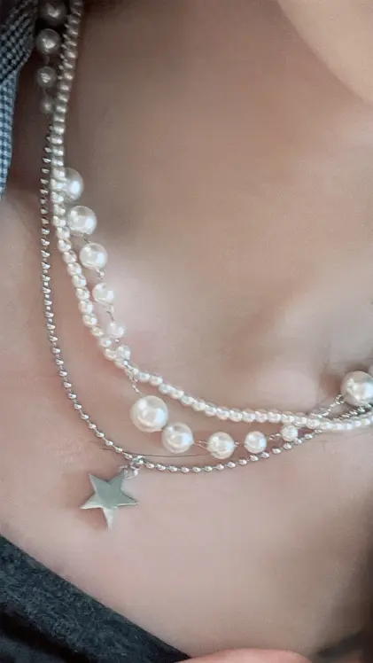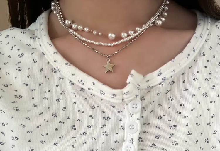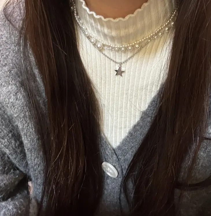 SAC8937 3連パールスターネックレス