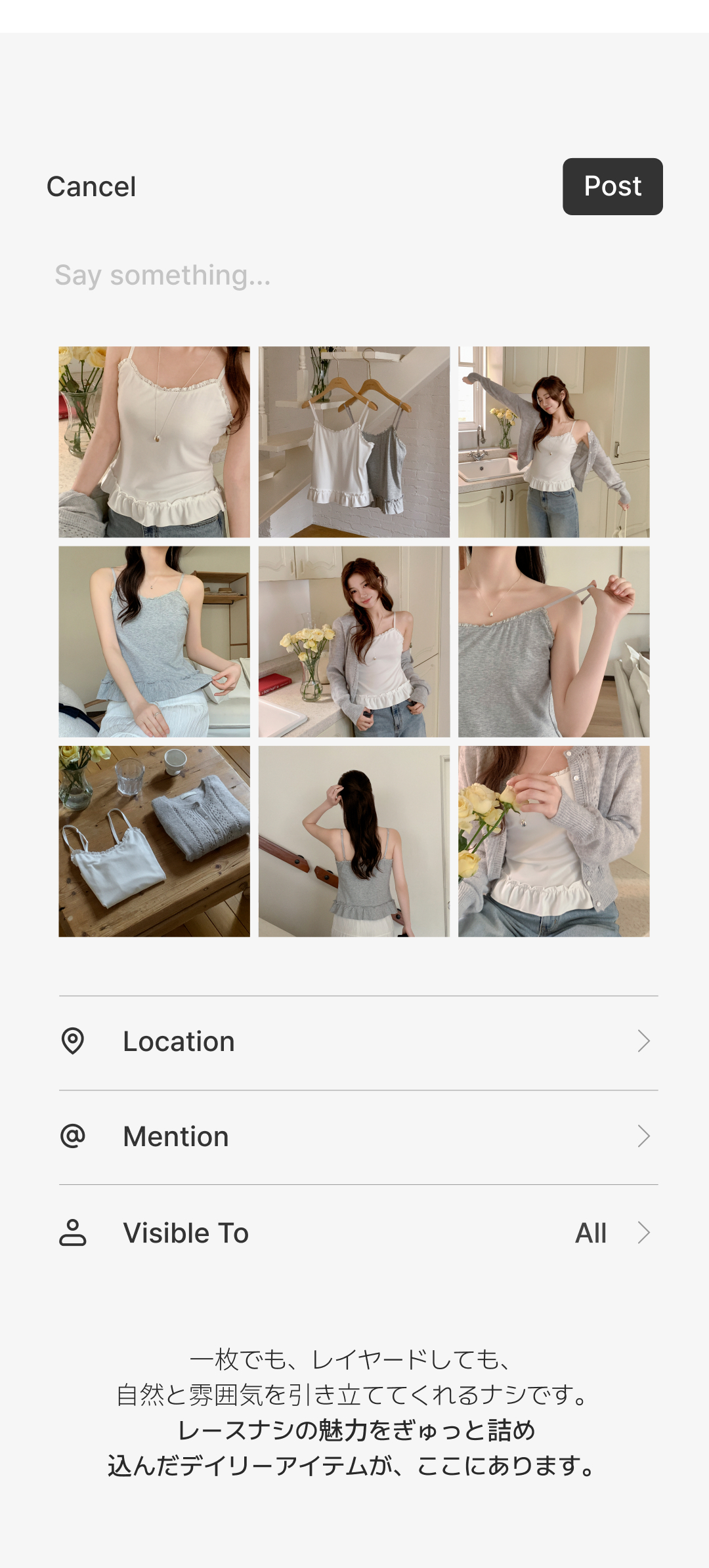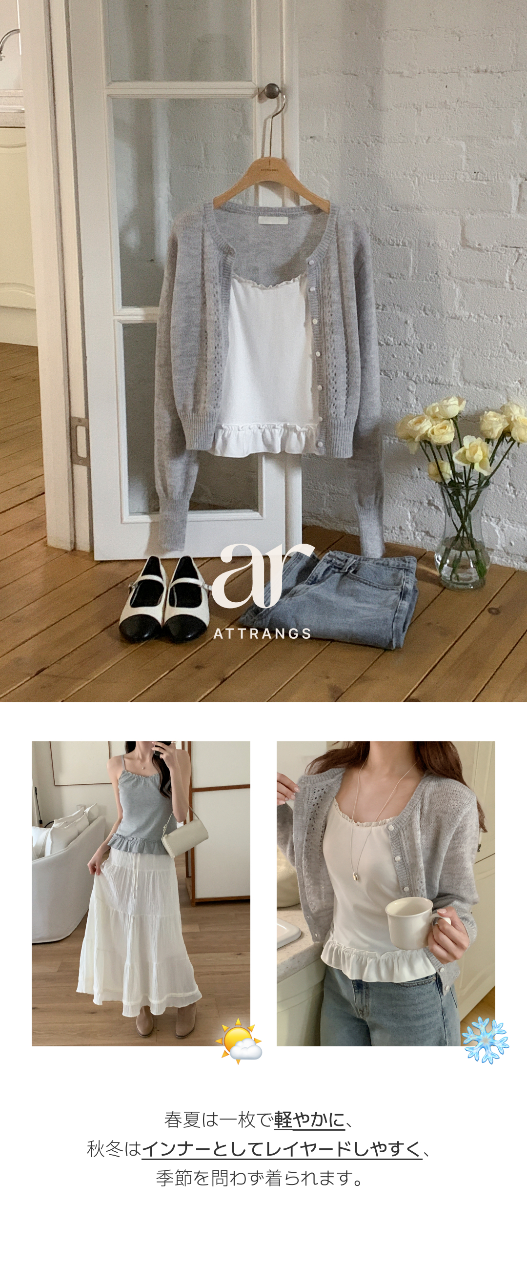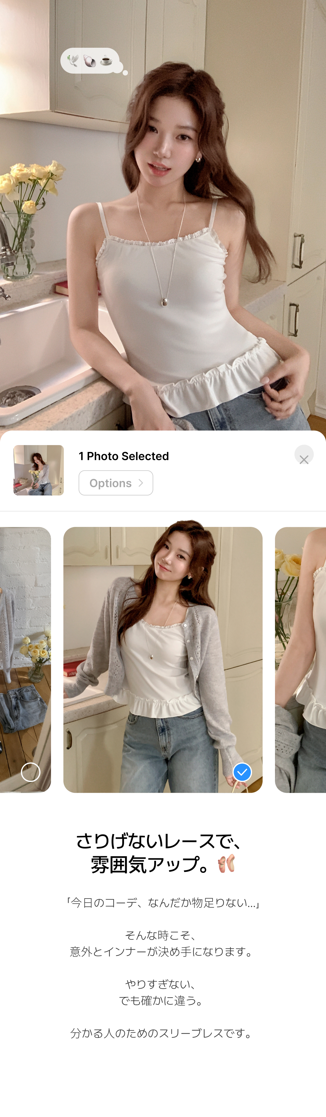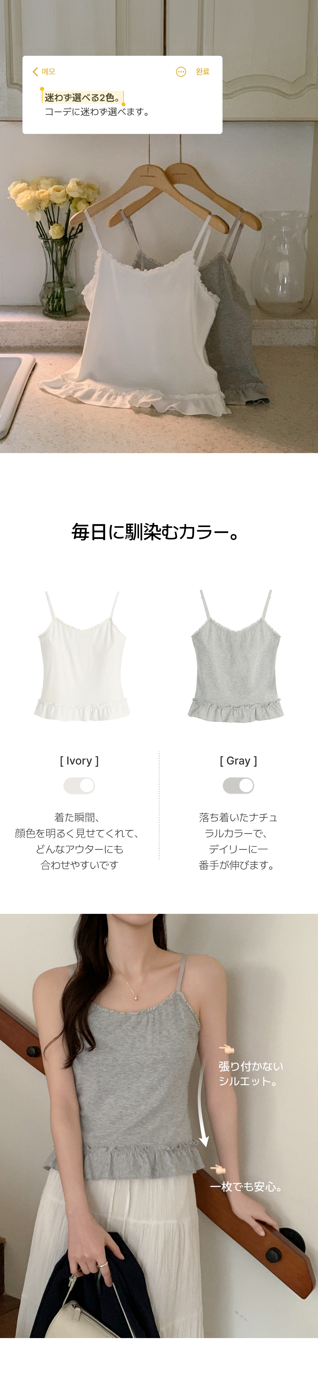 STS75570 (ストラップ調節可能/Pinterest風ムード♥)レースフリルスリーブレスキャミソール