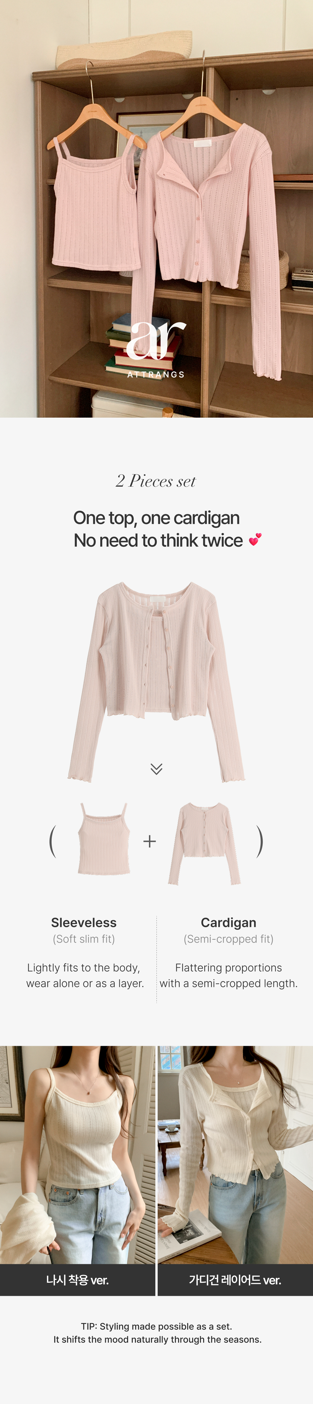 SGD31198 (キャミ&カーディガンセット♥) リブ編みパンチングニットカーディガンセット