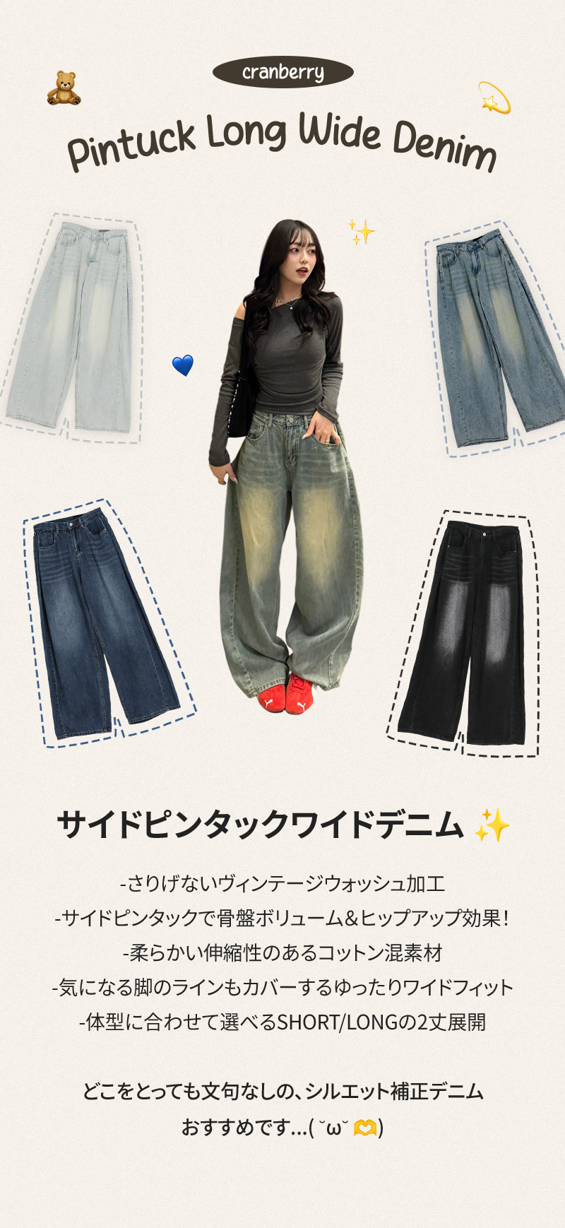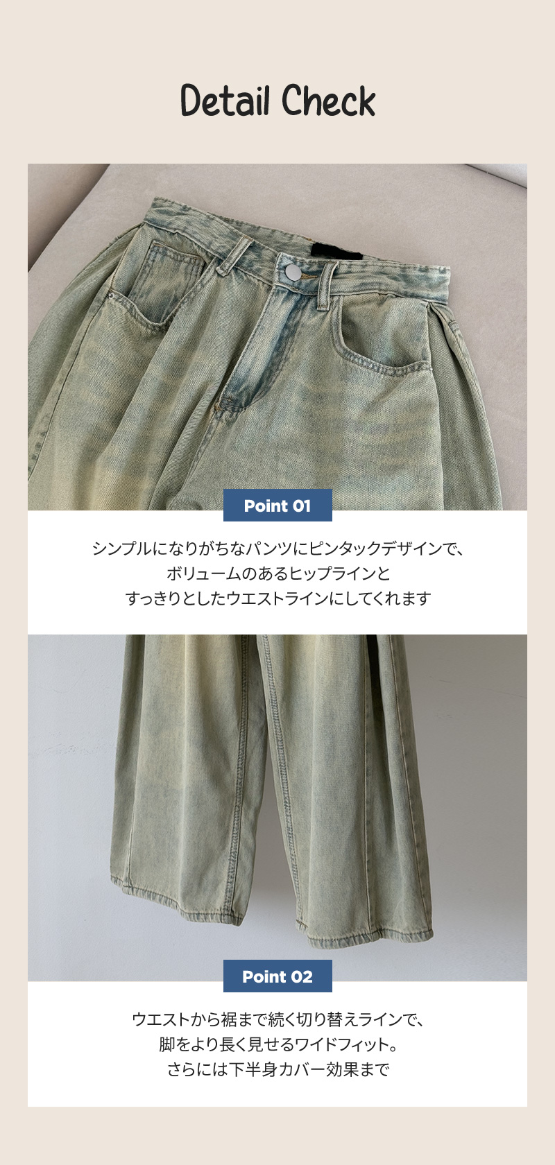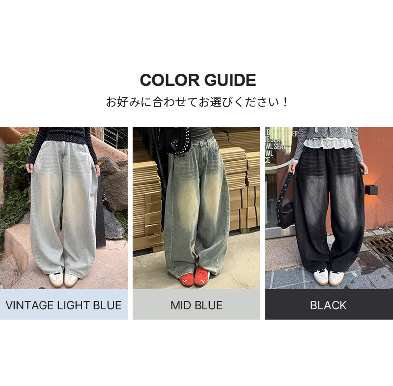 SJE13800 【可愛すぎるカラー♥】丈別ヴィンテージウォッシングワイドデニムパンツ