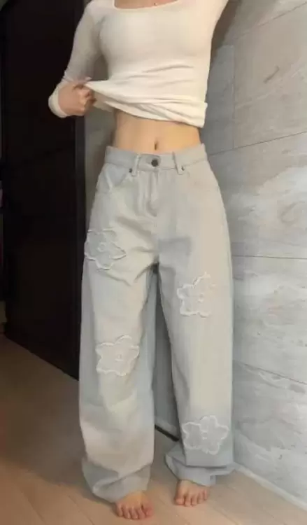 SPS38828 フラワー刺繍ワイドバルーンパンツ