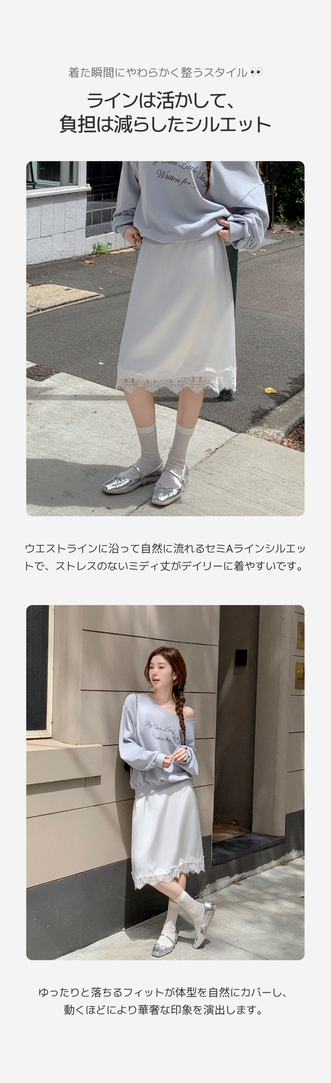 SSK26368 サテン レース ミディスカート