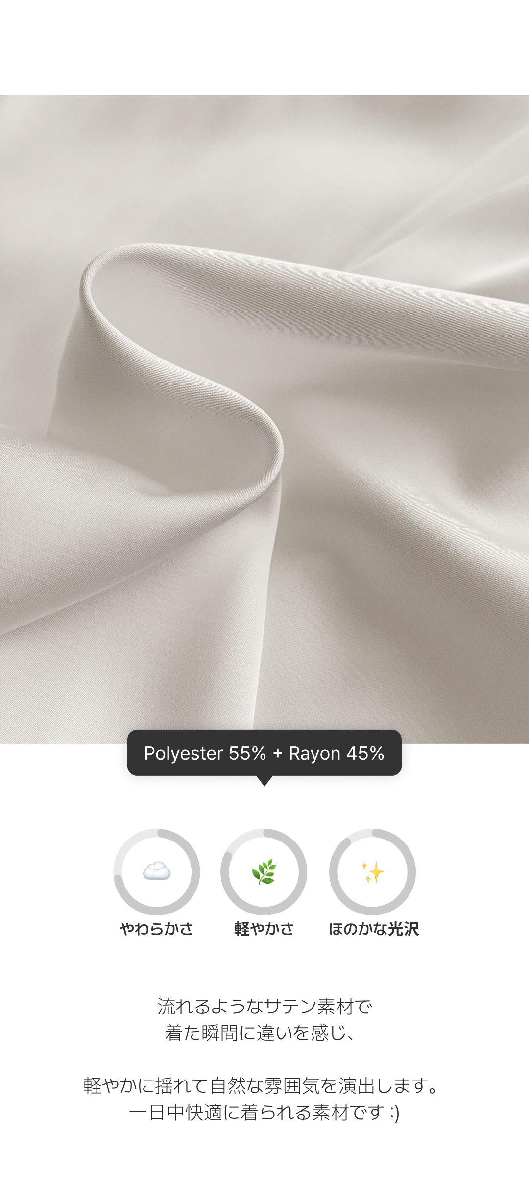| 素材 | POLYESTER(55%), RAYON(45%) |