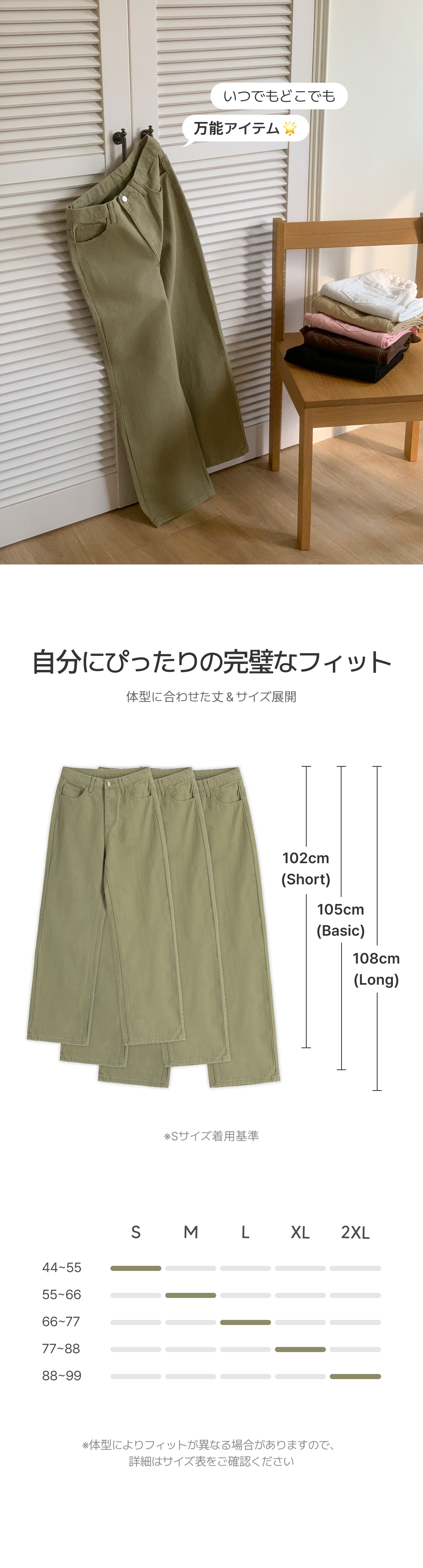 SPS38895 (S-2XL/ショート&ベーシック&ロング/3丈/6 Colors♥)ストレート カラー コットンパンツ