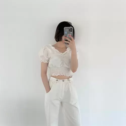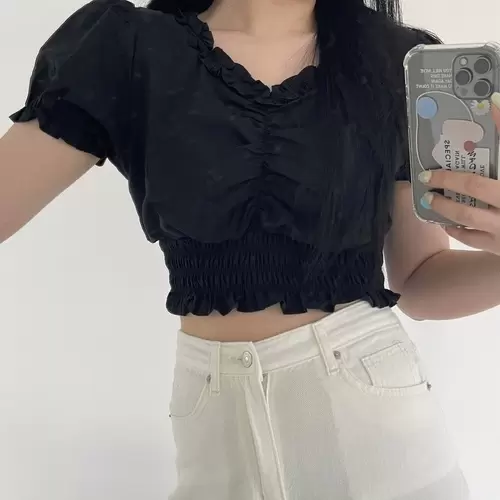 SBS1964 フリルシャーリングクロップブラウス