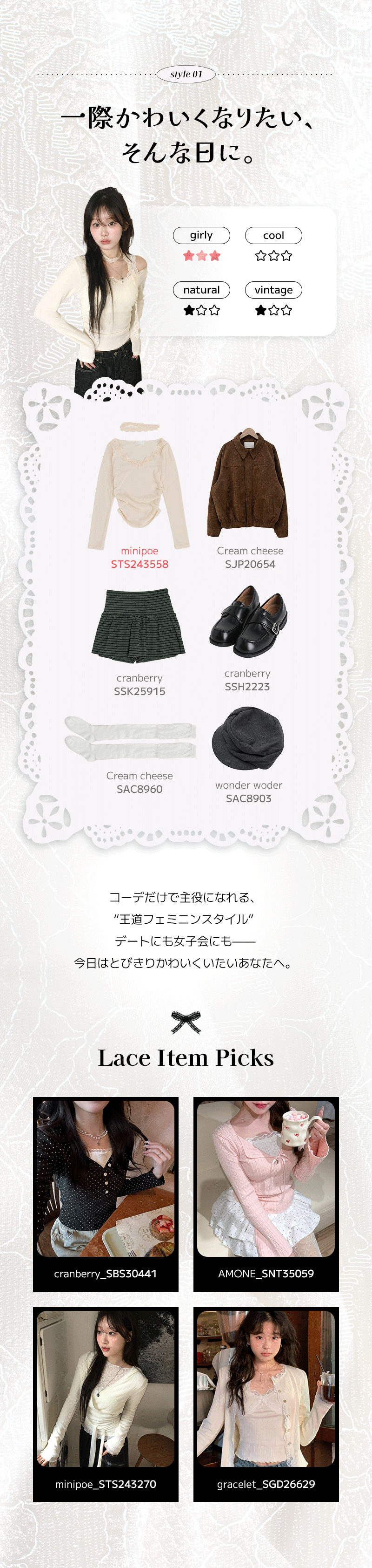 【SET】レースクロップド丈Tシャツ+スカーフ